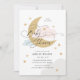 Invitation Lune et étoiles Matte Baby shower de script bleu r