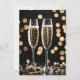 Paire de flûtes de champagne avec des confettis d'or et des lumières de bouquins sur le noir pour une fête du réveillon de l'an. Tout le texte peut être modifié.
