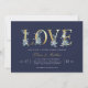 Des invitations de douche personnalisées et abordables pour les couples imprimés et personnalisées avec les détails de votre fête. Ce design élégant présente une typographie d'AMOUR en feuille d'or imitation avec de délicates fleurs d'aquarelle sur un arrière - plan bleu marine audacieux. Utilisez les outils de conception pour customiser le texte, modifier les polices et les couleurs ou ajouter vos propres photos pour créer une invitation wedding shower classe et élégante.
