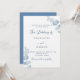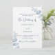 Un arrière - plan blanc, décoré de tiges d'eucalyptus bleues poussiéreuses, pousse. Personnalisez et et vos noms et les détails. Dos : arrière - plan bleu poussiéreux.