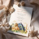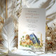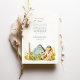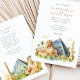 Embarquez pour un voyage inoubliable avec ce faire-part de mariage distinctif, qui présente une aquarelle vibrante représentant l'emblématique Luxor Hotel & Casino de Las Vegas. L'oeuvre capture magnifiquement le majestueux Sphinx, la grande pyramide et l'obélisque signature, le tout dans un ciel doux. Des palmiers verdoyants et des feuillages stylisés jaune doré encadrent la scène, rendus dans un style doux et accueillant d'aquarelle qui évoque la chaleur du désert. L'avant présente vos détails de mariage avec une typographie élégante, tandis que l'arrière offre "Les détails plus fins" pour des informations supplémentaires. Cette invitation est parfaite pour un mariage unique à destination, une fête à Las Vegas, ou des couples à la recherche d'une touche d'exotisme. La palette de couleurs comprend des jaunes sablonneux, des ocres riches, le bleu profond de la pyramide, des verts verdoyants des palmiers, et des touches d'or, de rouge et de bleu sur le Sphinx.