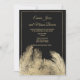 Faire-part de mariage tropicale fleurie noire et dorée de luxe. Ce faire-part de mariage raffiné de feuillage tropical doré est parfait pour toute élégante fille chic sophistiquée. Ce design est idéal pour un événement de fête branché et élégant. Customisez ce design avec votre propre message et des informations personnalisées. Tous les dessins sont imprimés.