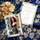 Celebrate your Quince Años with our luxurious navy blue and exquisite gold invitations, specially designed to reflect the elegance and glamour of this significant moment. The front of the invitation showcases your photo in a beautiful floral frame, where a golden tiara discreetly rests, adorning the design along with your name and the caption "Mis Quince Años," all in a faux gold finish.