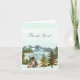 C'est une forêt, un thème de montagne, avec maman et bébé lynx. "Laissez l'aventure commencer !" est l'inspiration. Ce design comprend des montagnes aquarelles rustiques avec un lac réfléchissant devant, et des pins autour du lac. lynx adulte avec son petit devant le texte "Merci !". Sur le dos est un paysage de montagne aquarelle et de pins avec des couronnes ovales fleuries.