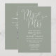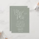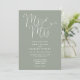 Cette invitation de mariage élégante et minimaliste vert sauge avec écriture peut être personnalisée avec vos informations en typographie chic avec les détails de votre site web de mariage et votre code QR au verso. Conçu par Thisisnotme