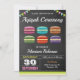 Éblouissez vos invités avec ce mignon invitation aqiqah avec des macarons colorés avec typographie moderne sur un arrière - plan de tableau noir. Ajoutez simplement les détails de votre événement sur ce modèle facile à utiliser pour en faire une invitation unique. Retournez la carte pour révéler un motif à rayures colorées au dos de la carte.