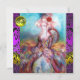Un design élégant, coloré, chic et fantaisiste dans des couleurs vives, fuchsia, sarcelle, turquoise, blanc, fleurs de damas avec une pierre gemme topaze jaune 3D brillante. Belle femme sophistiquée aux cheveux blonds-blanchâtres, tissus bleus et roses scintillants dorés d'un costume baroque avec des plumes et une rose rouge. Peinture originale à l'aquarelle et à l'acrylique avec feuille d'or et couleurs iridescentes sur toile. Cette carte cool et artistique est parfaite pour les mariages, les cérémonies de noces, les douches de mariée, les anniversaires de 16 ans, les fêtes d'anniversaire de quinceañera, les bals costumés, les fiançailles romantiques, les annonces de sauvegarde de la date, Noël, les réunions de bureau pendant les fêtes, les réunions de famille