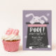 Parfait thème magique invitation fête d'anniversaire pour votre enfant! C'est l'illustration d'un lapin mignon qui s'élève au sommet d'un chapeau noir. Le texte à l'intérieur du casquette dit "pouf !" et l'information du parti suit. Le dos de la carte est en pois. Idéal pour la fête d'anniversaire de la fille aux couleurs rose et violet poussiéreuses.