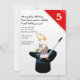 Un lapin adorable fait une pointe sa tête au-dessus de la jante du casquette magique en tant qu'étoiles éclatées derrière lui. Le ruban rouge faisant le coin peut tenir le nombre d'âge. Une invitation terrible pour la partie magique d'un enfant. Il est facile customiser la carte avec vos mots, police, couleur de police et choix de six types de papier.