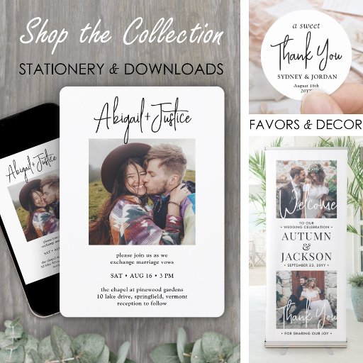 Invitation Magnétique Code QR et photo Mariage manuscrit Enregistrer la