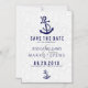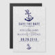 Invitation Magnétique Damas blancs et Ancre bleue marine