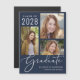 La carte magnétique bleue marine tient un faire-part de graduation photo avec un collage de 3 images et "Graduate" dans un élégant script blanc. Ajoutez le nom du diplômé, l'année de classe et l'école ou l'université dans la typographie blanche moderne.