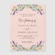 Un arrière - plan tendance couleur pêche décoré de fleurs de lavande et de verdure d'eucalyptus. Personnalisez et vos noms et détails.
