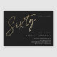 L'invitation minimaliste moderne 60e anniversaire comprend stylé faux feuille d'or numéro écriture manuscrite Soixante et vos détails de fête dans la police serif classique sur couleur arrière - plan noir, simple et élégant, grande surprise adulte jalon invitation anniversaire pour les hommes et les femmes. la couleur arrière - plan noir peut être changée à n'importe quelle couleur de votre choix.