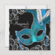 Invitation Magnétique Turquoise Blue Black Masquerade