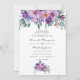 Fleurs violettes dans un faire-part de mariage de bouquet peint à la main, conçu pour être rapidement et facilement customisé pour votre journée spéciale.