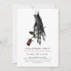 Invitations douteuses de la fête d'Halloween avec l'illustration de la main d'une sorcière déplaisante tenant un rose. Noir et blanc aux accents bordeaux rouges. Le côté inverse brumeux rouge foncé avec encre noire. Le texte est entièrement modifiable, y compris le titre de l'événement.