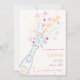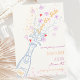 Ce style tendance dessiné à la main illustré à l'exception de la carte d'invitation à la date présente une bouteille de champagne gribouillant des fleurs et des confettis. Le design fantaisiste et décalé comprend des caractères manuscrits et des doodles de célébration. Couleurs pastel aux tons bleu poussiéreux pour une collection mariage moderne et amusante.