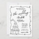 Faire-part de mariage De Cadre Fun Fun Fun Fun Fun. Ce faire-part de mariage fantaisiste et créatif est parfait pour les couples qui souhaitent donner un ton ludique et léger à leur grand jour. Conçu en noir et blanc classique, l'invitation présente un cadre tourbillonnant avec des détails de coeur charmants qui entourent vos informations mariages, présenté dans un délicieux mélange de script et de polices manuscrites de style pour une atmosphère décontractée et élégante. Dans le coin inférieur gauche, une illustration amusante d'une tour de verre de champagne, avec une bouteille de champagne coulant à bulles sur le dessus, ajoute une touche festive et vivante. Ce détail excentrique se marie harmonieusement avec le cadre pivotant pour créer un design unique et mémorable. Au fond de l’invitation, on retrouve un accent sucré, un monogramme manuscrit des initiales du couple accompagné d’une charmante croquis d’une bouteille de champagne et d’une vitre, qui lie le thème ensemble. Entièrement personnalisable, ce design conviendra parfaitement aux couples qui recherchent quelque chose de tendance, de design et de personnalité. Disponible en version imprimée ou sous forme de fichier numérique téléchargeable pour un partage aisé ou une impression locale.