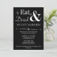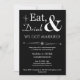 Invitez amis et famille à vous aider à célébrer votre récent mariage avec cette invitation de fête décontractée funky rétro blanc sur noir Manger, Boire & Être Marié !