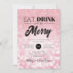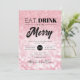 Soirée de Noël / Fête de Noël / Fête d'hiver Invitation modèle avec "Manger, Boire & Soyez Joyeux" design typographique, faux parties scintillant & bokeh lumières motif en Rose Gold Blush. Idéal pour les fêtes d'entreprise, les bals et galas d'hiver, la cravate noire / événements et les fêtes de bureau.