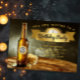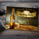 Invitations de fête d'anniversaire de bière avec une bannière d'or sur un arrière - plan de bouteille de bière. Vous pouvez ajouter du texte et de l'âge au étiquette de bouteille de bière pour personnaliser cette invitation à la fête de la bière amusante et classe.