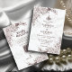 Marbre blanc Floral dentelle islamique QR Code Mariage Invitations. Invitation Front : Une toile de fond en marbre blanc immaculé fournit une base luxueuse pour cette élégante invitation de mariage. Dentelles florieuses, qui rappellent les broderies complexes, sont positionnées dans des coins opposés, créant une esthétique visuellement étonnante et féminine. L'invitation commence par l'expression sacrée "Bismillah" dans l'élégante calligraphie arabe, invoquant les bénédictions divines sur le couple. Ci-dessous, les noms du couple sont affichés en évidence, suivis par les détails mariages essentiels tels que la date, l'heure et le lieu. Invitation Retour : Le revers de l'invitation reflète l'esthétique du front, avec le même fond de marbre blanc et les motifs de dentelle fleurie. Une typographie audacieuse invite les clients à "répondre" d'ici la date d'échéance du RSVP. L'URL du site Web mariage est fournie pour des informations plus détaillées, et un code QR est placé de façon pratique pour un accès rapide aux détails numériques. Les noms du couple sont également inclus sur le dos pour une référence facile.