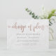 Invitation Marbre blanc & Rose Gold Script Changement de plan