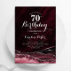 Bourgogne et argent agate 70e anniversaire invitation de fête. Design élégant et moderne avec vin de marsala, arrière - plan de géode de marbre d'aquarelle rouge foncé, faux parties scintillant argent et script de typographie. Carte invitation branchée parfaite pour une célébration anniversaire féminine élégante. Invitations Zazzle imprimées ou téléchargement instantané modèle imprimable numérique.