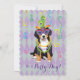 Invitation tes amis à être des Chiens de fête et célébrer Mardi Gras avec ce mignon chiot bernois de chien de montagne, habillé en masque et perles de plume festives. Préparez-vous à vous amuser lors d'une bonne soirée doggone. Laissez les bons temps rouler !