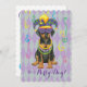 Invitation tes amis pour être des Chiens de Fête et célébrer Mardi Gras avec ce mignon chiot Doberman Pinscher, habillé en masque festif, casquette jester et perles. Préparez-vous à vous amuser lors d'une bonne soirée doggone. Laissez les bons temps rouler !