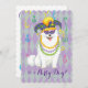 Invitation tes amis à être des Chiens de Fête et célébrer Mardi Gras avec ce mignon petit Eskimo Chien Américain, habillé en masque et perles festives. Préparez-vous à vous amuser lors d'une bonne soirée doggone. Laissez les bons temps rouler !
