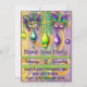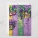 L'artiste Mardi Gras masque et perles en or violet, aqua, vert et Mardi Gras sur le devant de cette invitation personnalisable Mardi Gras Party. Ajoutez tous les détails de votre fête sur le devant. Le verso de cette carte a une autre illustration des masques Mardi Gras pour vous. Passez du bon temps à votre fête Mardi Gras ! Bon appétit !