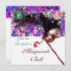 Invitation MARDI GRAS MASQUERADE & CONFETTI blanc rose argent