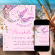 Des filles personnalisables mermaid invitation fête d'anniversaire, avec une queue de sirènes magique en fausse parties scintillant, dans les tons de rose, faux or et violet, avec de mignons hippocampes.
