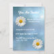 Invitez vos amis et votre famille à célébrer un anniversaire ou toute autre occasion avec cette invitation facilement personnalisable. Elle présente une marguerite blanche joyeuse sur un fond de ciel étoilé lumineux.