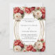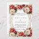 Un arrière - plan blanc décoré de roses rouges et blancs, de fleurs. Un cadre ovale en faux or. Personnalisez et ajoutez vos noms et détails.