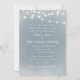 Invitations de mariage Dusty bleu aquarelle avec lumières à cordes blanches et une police de script élégante tout au long de l'invitation.