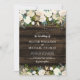 D'élégantes fleurs d'aquarelle blanche et la verdure décorent ces invitations de mariage rustiques. Le design présente des fleurs avec des lampes à cordes et un arrière - plan en bois de grange foncé avec une police script moderne. Les dessins sont des illustrations/graphiques à papier plat - PAS VRAIMENT GOLD FOIL.