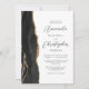 Le bord gauche de cette élégante faire-part de mariage moderne est orné d'une bordure en aquarelle noire ornée d'une parties scintillant en faux or. Le texte personnalisable combine des polices de script et sans serif en gris fusain sur un arrière - plan blanc. L'envers est assorti d'un design d'agate noir et or.