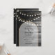 Une belle fusion de bois rustique associée à l'élégance moderne des lumières et de l'arche dorées chic. Un design unique qui utilise des tons noirs et blancs avec une touche d'or élégant. Un design de grange de campagne rencontre le glamour de la ville. Design d'invitation de mariage rustique avec des éléments modernes. Des articles de papeterie de mariage assortis et d'autres formats d'invitation de mariage sont également disponibles.