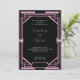 Découvrez notre élégant faire-part de mariage Art déco noir et rose ! Cette invitation est une pièce étonnante qui laissera vos invités en émerveillement. La partie principale de l'invitation est noire, ce qui crée un look sophistiqué et intemporel. La bordure en art déco rose présente des lignes complexes et des formes géométriques, ajoutant une touche de féminité et de glamour au design général. Le texte de l'invitation est blanc, ce qui le rend facile à lire et vous assure que votre message est transmis clairement. Les noms des couples sont surlignés dans une belle teinte rose, ce qui les rend pop et ajoute une touche personnelle au design. Cette invitation est parfaite pour les couples qui veulent faire une déclaration avec leurs invitations de mariage et présenter leur style unique. Le faire-part de mariage art déco noir et rose est élaboré avec les matériaux les plus fins, ce qui lui confère une apparence et une sensation de qualité. Il est imprimé sur papier de haute qualité et est la taille idéale pour l'insertion dans une enveloppe standard. L'attention portée aux détails dans la conception et la construction de cette invitation est inégalée, ce qui en fait un choix exceptionnel pour votre journée spéciale. Dans l'ensemble, notre faire-part de mariage art déco noir et rose est un choix étonnant pour les couples qui veulent faire une déclaration avec leurs invitations de mariage. C'est un véritable chef-d'oeuvre qui impressionne vos invités et donne le ton pour un événement mémorable et élégant. Commandez la vôtre aujourd'hui et rendez votre jour de mariage inoubliable !
