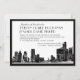 Les invitations aux mariages paysagistes d'inspiration vintage présentent une silhouette de l'horizon urbain du centre-ville de Detroit, des polices de style art déco élégantes et séduisantes, ainsi que des couleurs noir et blanc classiques. Cette version de la conception comprend une bordure imprimée en noir.