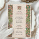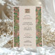 Ce charmant faire-part de mariage puise son inspiration dans le mouvement Arts & Crafts avec ses bordures florales magnifiquement stylisées et sa composition symétrique. Le design est composé de fleurs vertes, de coraux et de roses fluides, créant une riche tapisserie de formes naturelles le long des deux côtés de la carte. L'élégante typographie est centrée dans un arrière - plan doux, surmonté d'un emblème de monogramme floral assorti, à l'avant comme à l'arrière. Idéal pour les couples amateurs de nature, les mariages vintage ou ceux inspirés par William Morris et le design du début du XXe siècle. Personnalisez cette invitation unique pour refléter votre propre esthétique romantique.