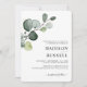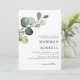 Simple et élégante verdure d'eucalyptus unique avec éclaboussures dorées pour invitation de mariage. Typographie classique et script avec alignement à droite. Ajoutez le nom des mariés au verso. Articles assortis dans cette collection.