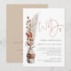 Mariage avec herbes de la Pampa rustiques et code QR. Ajoutez votre code QR à votre site web de mariage au verso, cela en fait une option pratique pour que vos invités répondent et voient tous les détails sans avoir besoin de cartes de RSVP et de détails séparées. Un ensemble de style écriture manuscrite pour 'Nous nous marions' et le reste du texte que vous pouvez facilement personnaliser. Des herbes de style boho et des baies séchées dans un vase rustique courent le long du côté gauche.