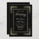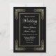 Un noir élégant avec une dentelle dorée ornée faire-part de mariage.