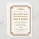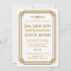 Ces invitations de mariage présentent une palette de couleurs blanches et dorées, un cadre géométrique et d'autres détails stylistiques inspirés de l'Art Déco et des années folles. Vous pouvez customiser les champs de texte d'exemple à votre convenance.