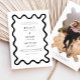 Faire-part de mariage simple et fantaisiste avec une ligne décalée dessinée à la main comme un cadre. Vous pouvez ajouter une photo au dos avec la même ligne ondulée.
