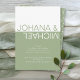 Cette faire-part de mariage enchanteresse présente une combinaison enchanteresse de blocs de couleur vert sauge et blanc, créant une esthétique moderne et capricieuse. La partie supérieure de l'invitation est élégamment décorée dans une teinte blanche immaculée, tandis que la partie inférieure dégage une teinte verte sauge rafraîchissante. Ajoutant une touche de lucidité, le nom de la mariée est élégamment inscrit en vert sauge sur le bloc blanc, tandis que le nom du marié se distingue en blanc sur le bloc vert sauge, placé intrigamment à l'envers. Le charme minimaliste de l'invitation est renforcé par l'utilisation d'une police simple. À l'envers, un motif captivant des initiales du couple en blanc orne gracieusement un arrière - plan vert sage, complétant ce faire-part de mariage captivant.